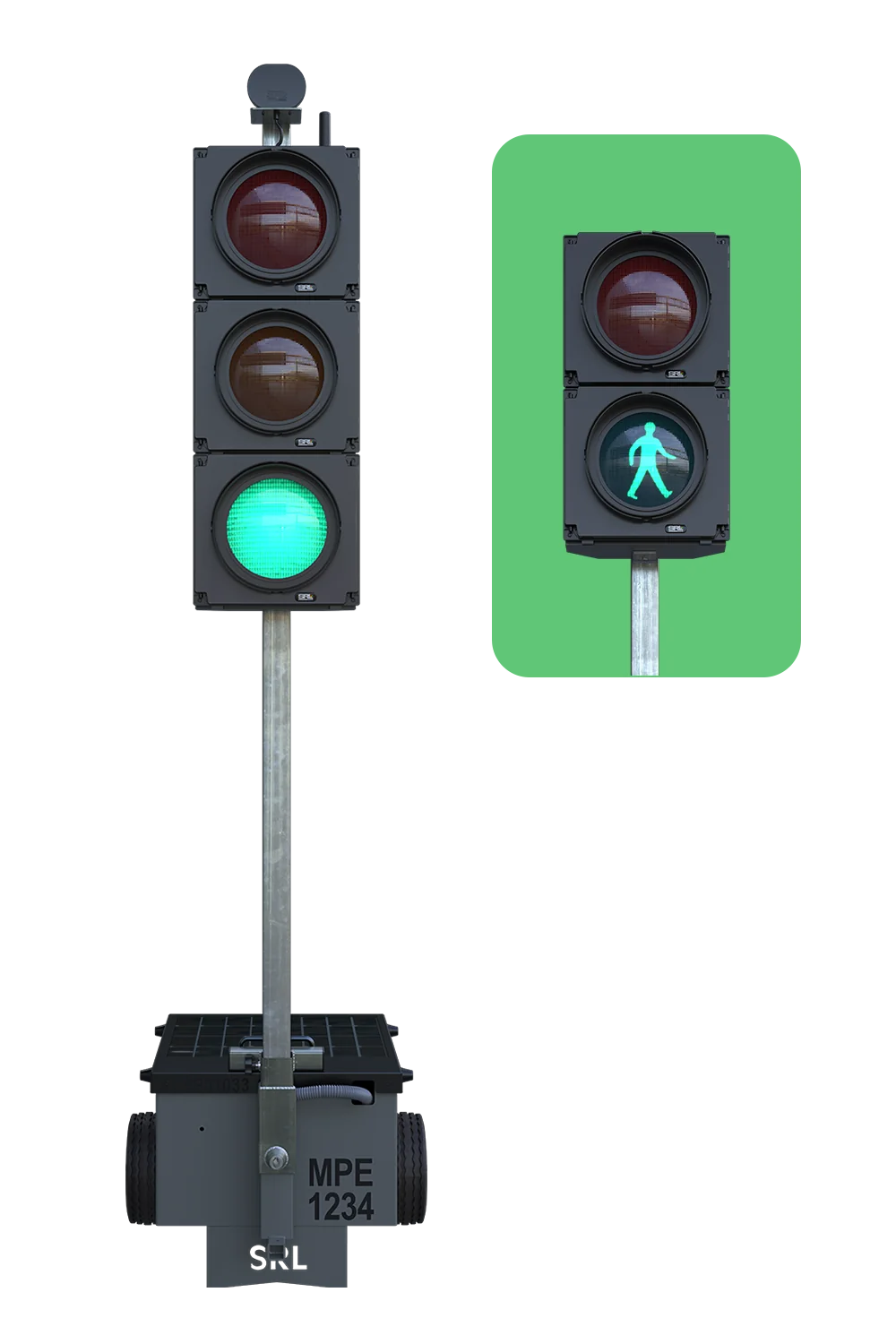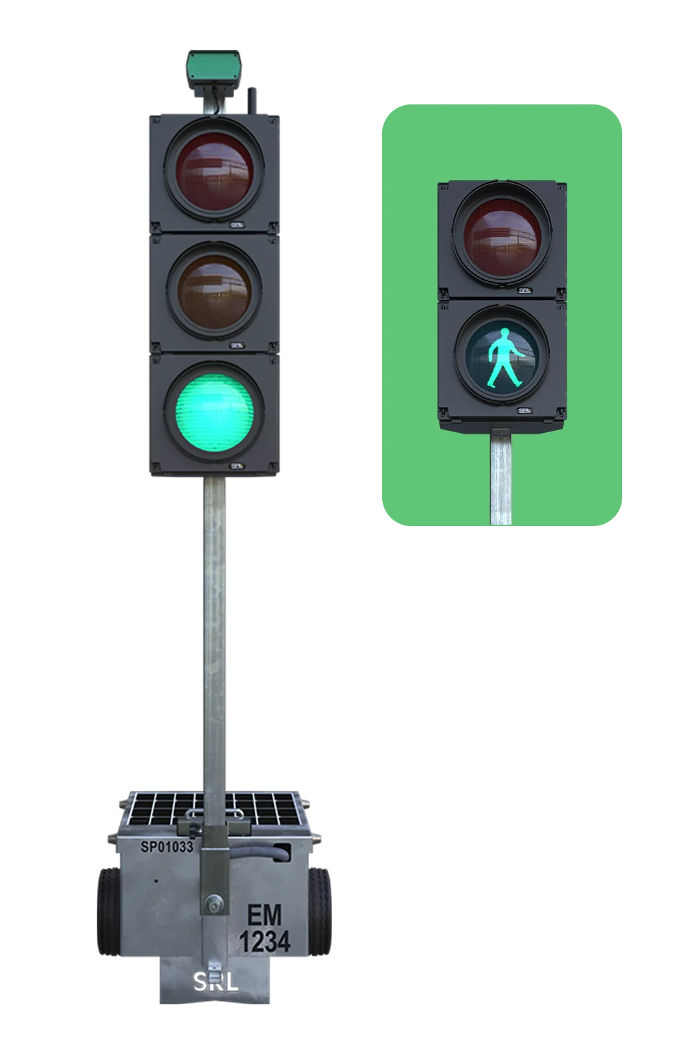 A countdown timer is available alongside the Green Man aspect. Research shows such a timer increases pedestrians understanding of Pelican crossings and their safety.